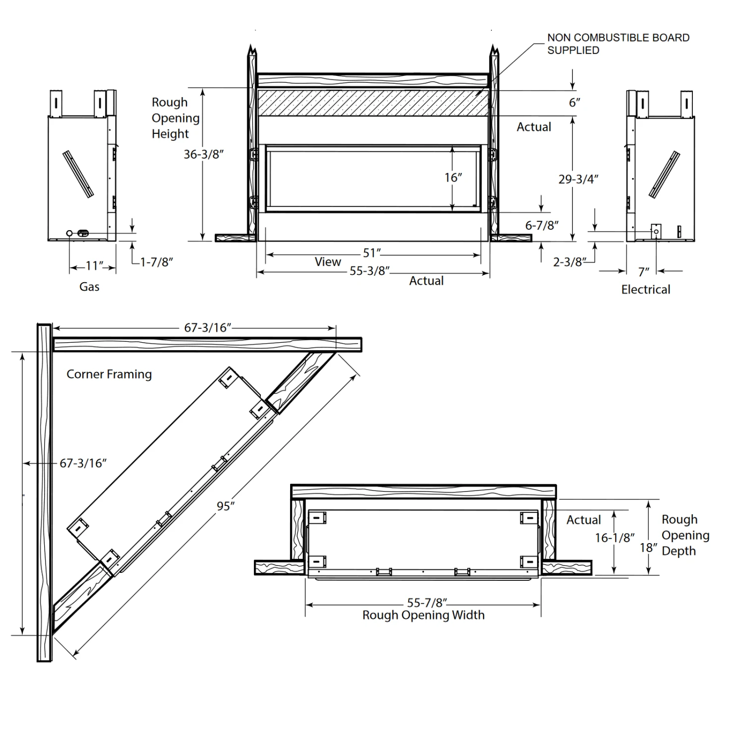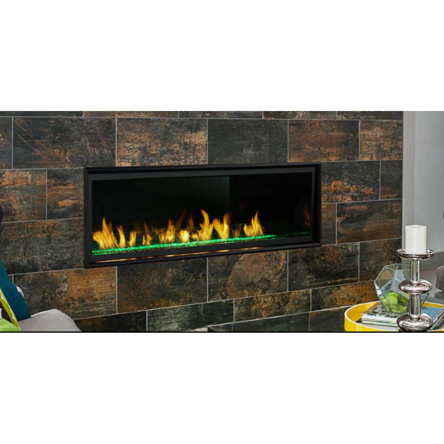 - High-contrast, brilliant LED lighting and shimmering fireglass accentuate the flames