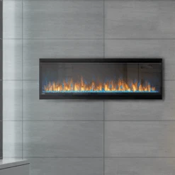 - Crystal clear cube ember bed included Up to 5,000 BTU’s and 1,500 Watts – warms up to 400 sq. ft. (Slimline models)