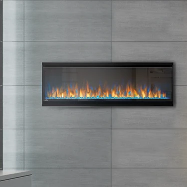 See the fireplace, not the frame with Napoleon’s Alluravision Series linear electric fireplaces. They stand out from the rest with their nearly frameless viewing area which highlights the unique flame colors. Set the mood with yellow, orange, blue and multicolor flames with the push of a summary. Easy to use, this electric fireplace is plug and play – just hang on the wall and plug it in. The Alluravision 32 can also be hardwired to 120V and comes standard with a crystal media ember bed and remote control. Napoleon’s Alluravision 32 linear electric fireplace is about adding the fireplace, and not the frame to your favorite room.