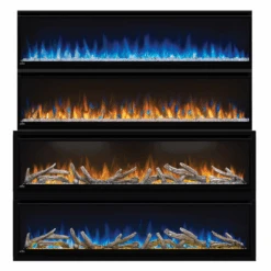 See the fireplace, not the frame with Napoleon’s Alluravision Series linear electric fireplaces. They stand out from the rest with their nearly frameless viewing area which highlights the unique flame colors. Set the mood with yellow, orange, blue and multicolor flames with the push of a summary. Easy to use, this electric fireplace is plug and play – just hang on the wall and plug it in. The Alluravision 60 Deep can also be hardwired to 120V or 240V. Comes standard with a crystal media ember bed and remote control. The NIGHT LIGHT and glass media with driftwood make beautiful additions to the deep model. Napoleon’s Alluravision Series linear electric fireplaces are about adding the fireplace, and not the frame to your favorite room.