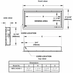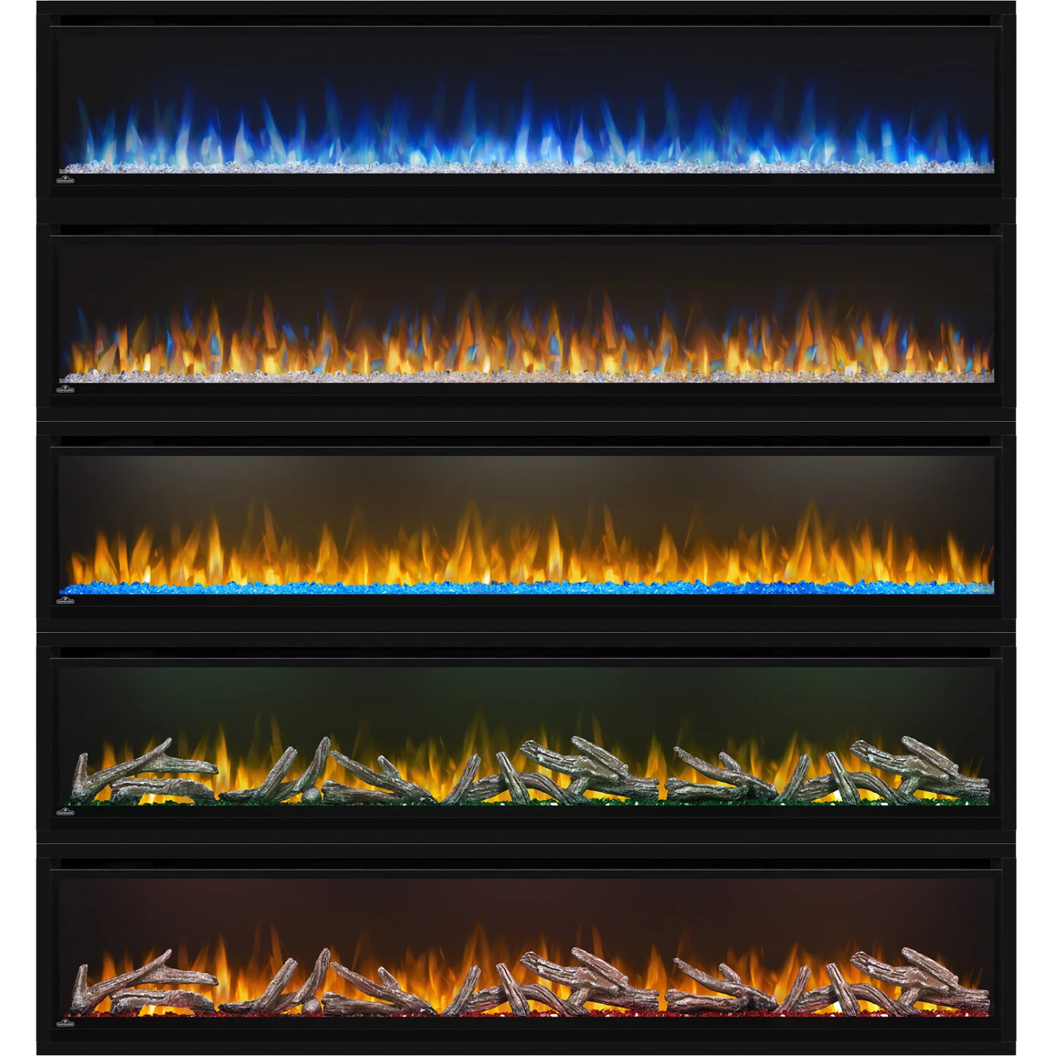 Napoleon’s Alluravision 74 inch linear electric fireplaces stand out from the rest with their nearly frameless viewing area that highlights the unique flame colors. The Alluravision 74 Deep features a soft fade in and out when turned on and off and they can be used as a heater at any time with or without the flame being on. Set the mood with yellow, orange, blue and multicolor flames with the push of a summary. Easy to use, this electric fireplace is plug and play – just hang on the wall and plug it in. The Alluravision 74 Deep can also be hardwired to 120V or 240V. The accent lights and driftwood logs with topaz glass embers make beautiful additions to the deep model. Napoleon’s Alluravision Series linear electric fireplaces are about adding the fireplace, and not the frame to your favorite room.