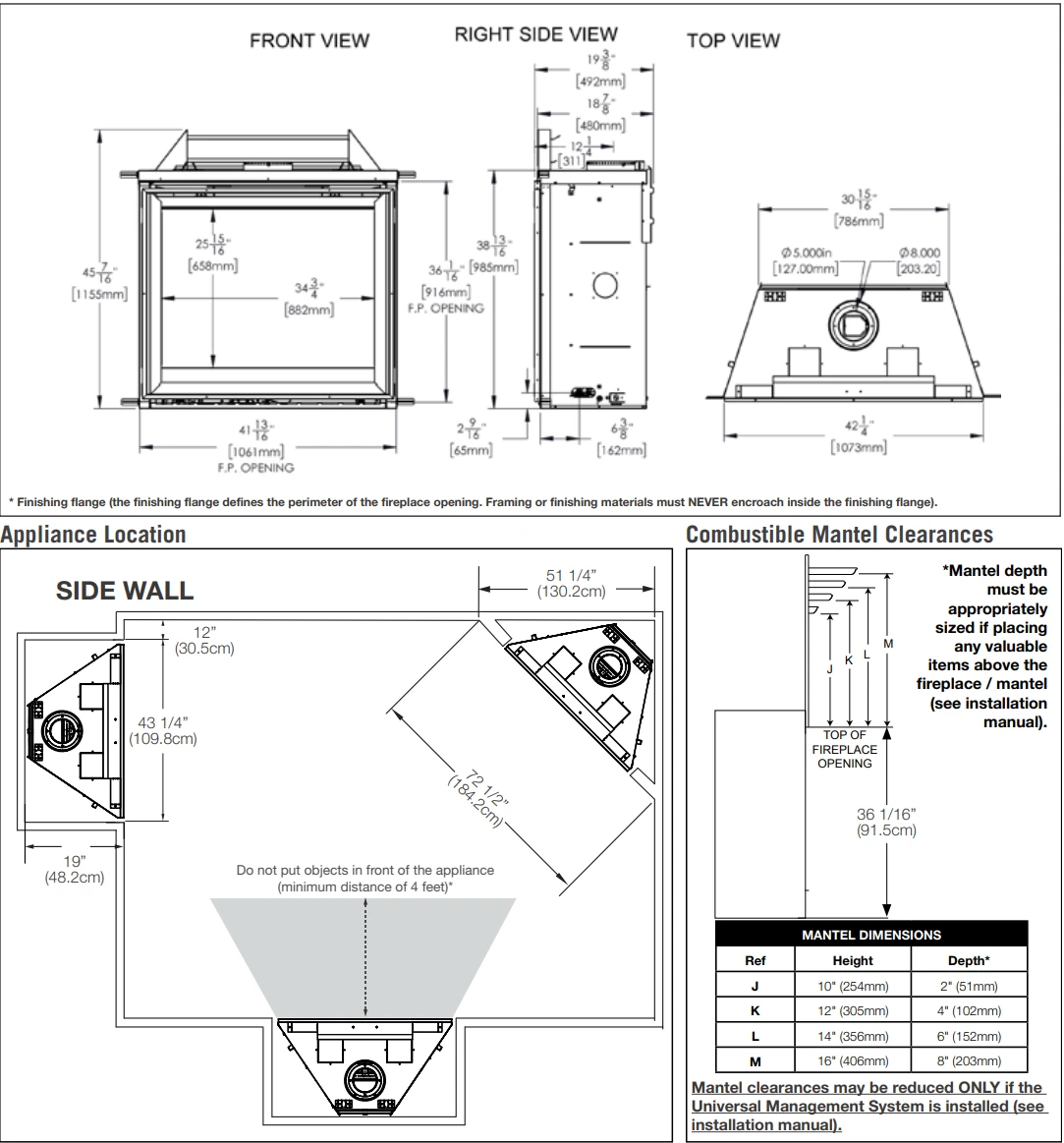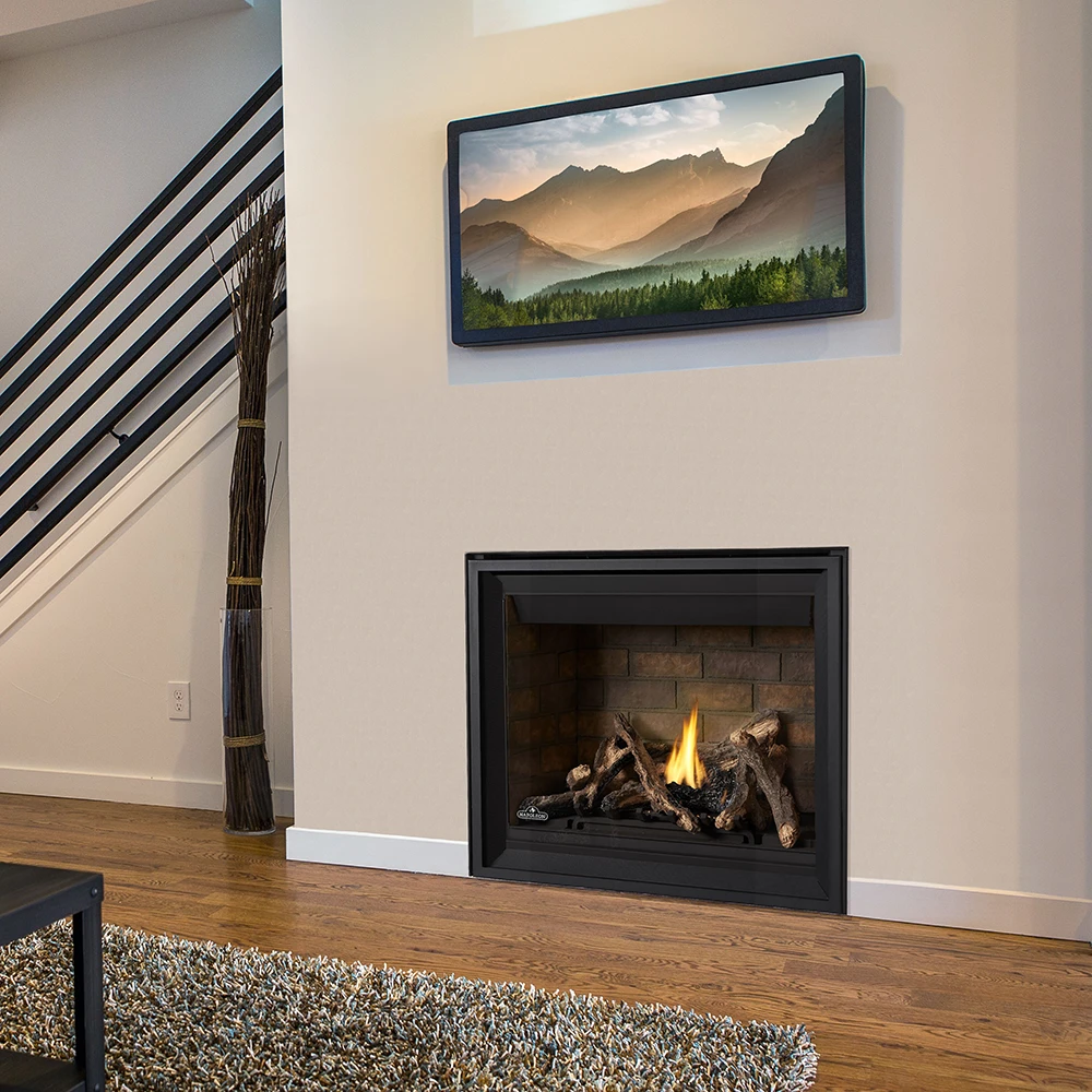 Introducing the Altitude 42 gas fireplace, designed for both aesthetics and functionality. This classic fireplace offers abundant customization options. Its easy installation and clean design ensure unobstructed views of the firebox. Standard features include hand-painted split oak logs with additional choices for panels and trims. You can also operate the fireplace conveniently using an optional remote control.