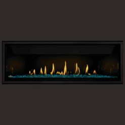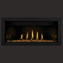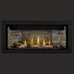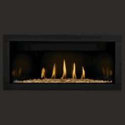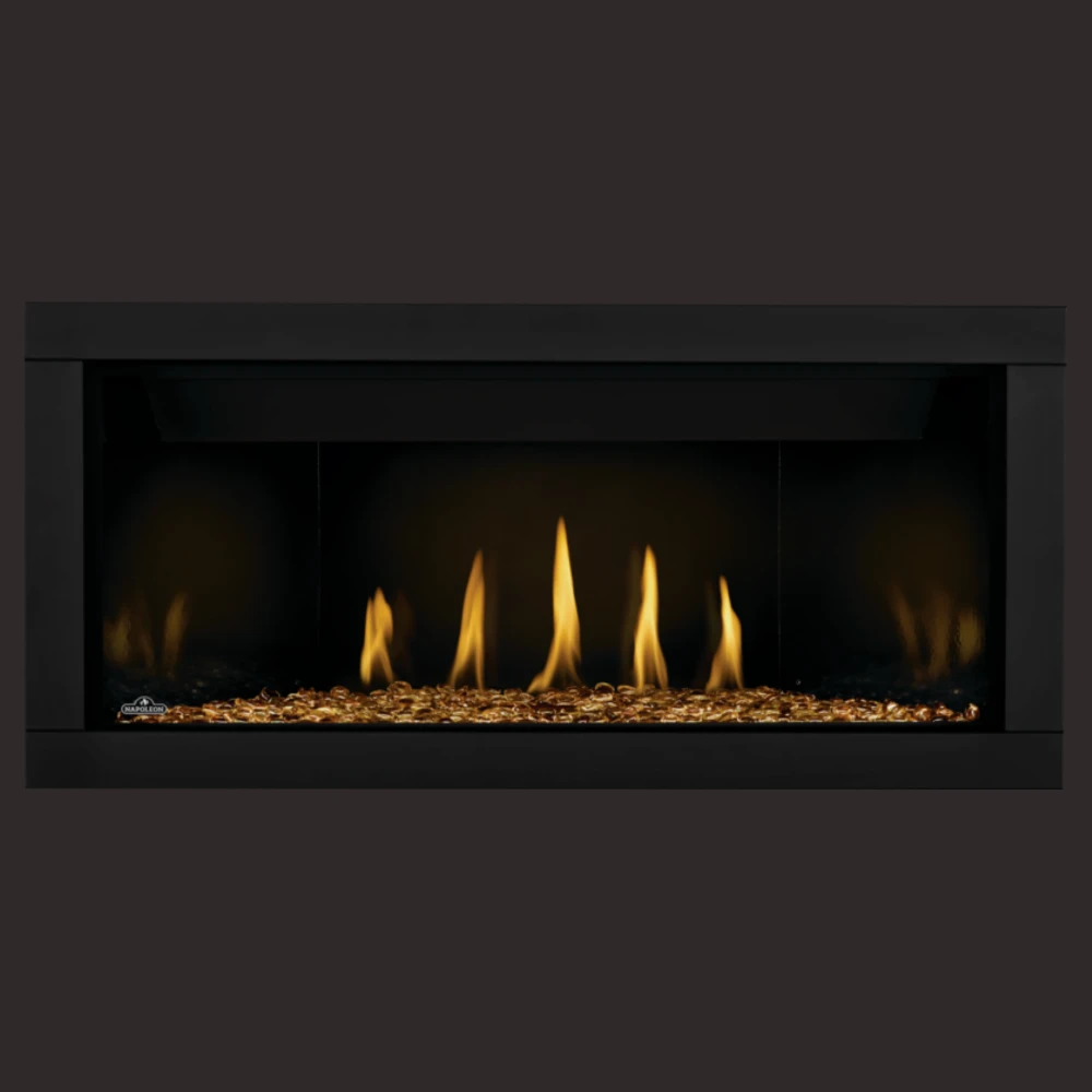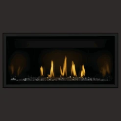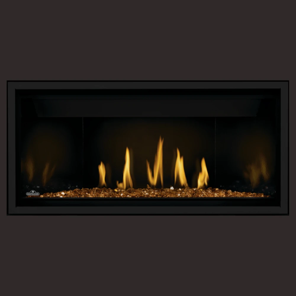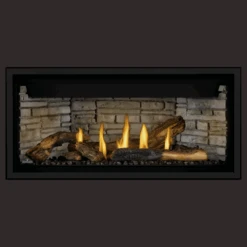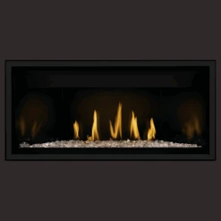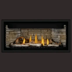 Introducing the Napoleon BLP42NTE gas linear fireplace, ideal for heating smaller spaces. Enjoy TV installations with optional passive universal heat management and control the unit via the eFire mobile app with Bluetooth technology. Its contemporary design offers media options like birch, driftwood, split oak log kits, or glass. Experience efficient heat circulation with Universal Heat Management, adding comfort and style to your space.