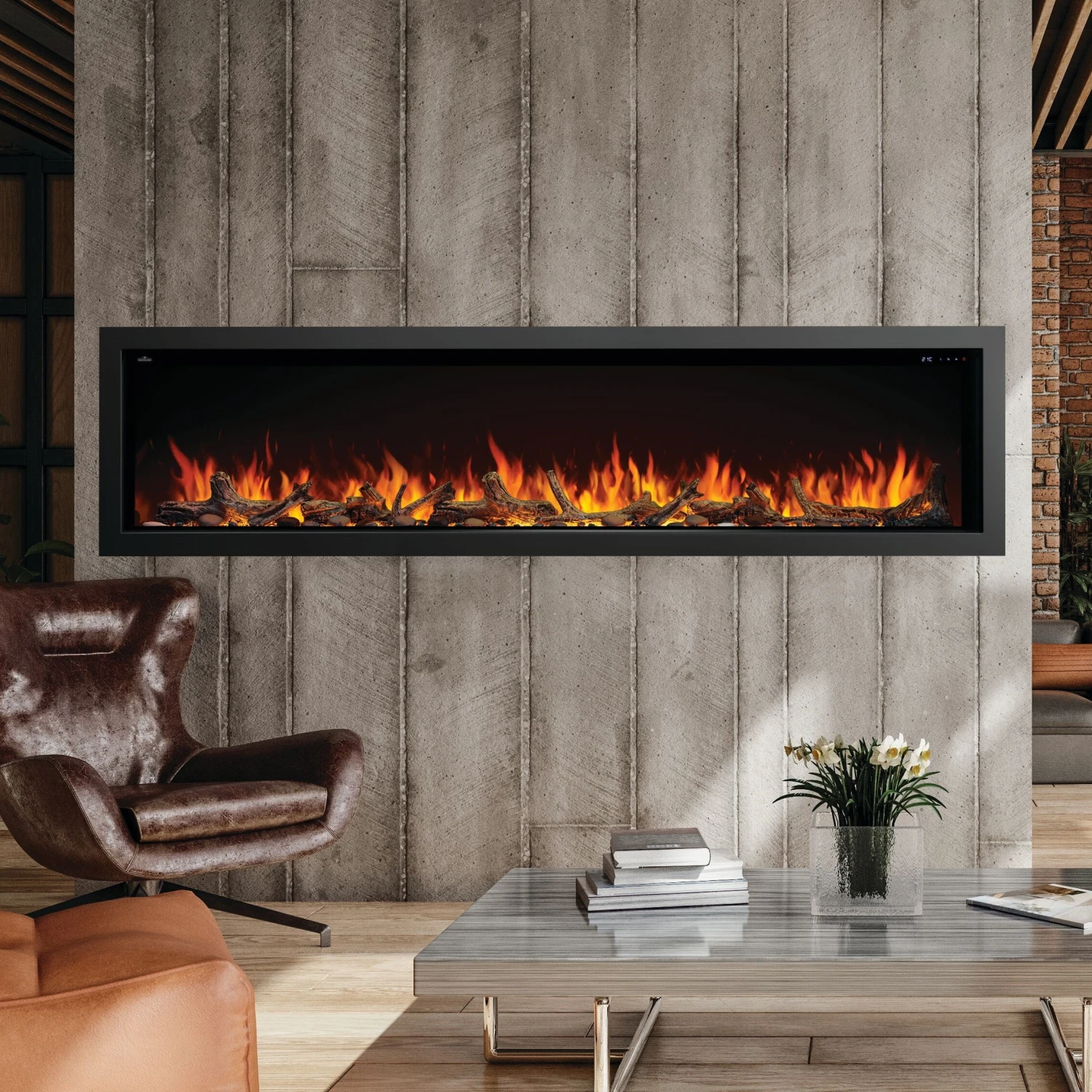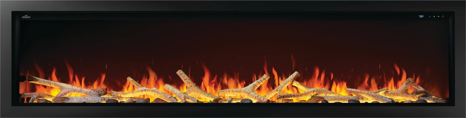 Transform any room with the Astound Electric Fireplace, featuring ultra-realistic flames for a statement piece that blends seamlessly into your space. Choose framed or frameless designs to match your decor, and easily switch between crystals and logs. With voice control, WiFi-enabled app, and remote options, it integrates perfectly into your smart home. Utilize ECO mode for energy savings or BOOST for extra warmth. Customize with 13 ember and light settings via the Napoleon Home App.