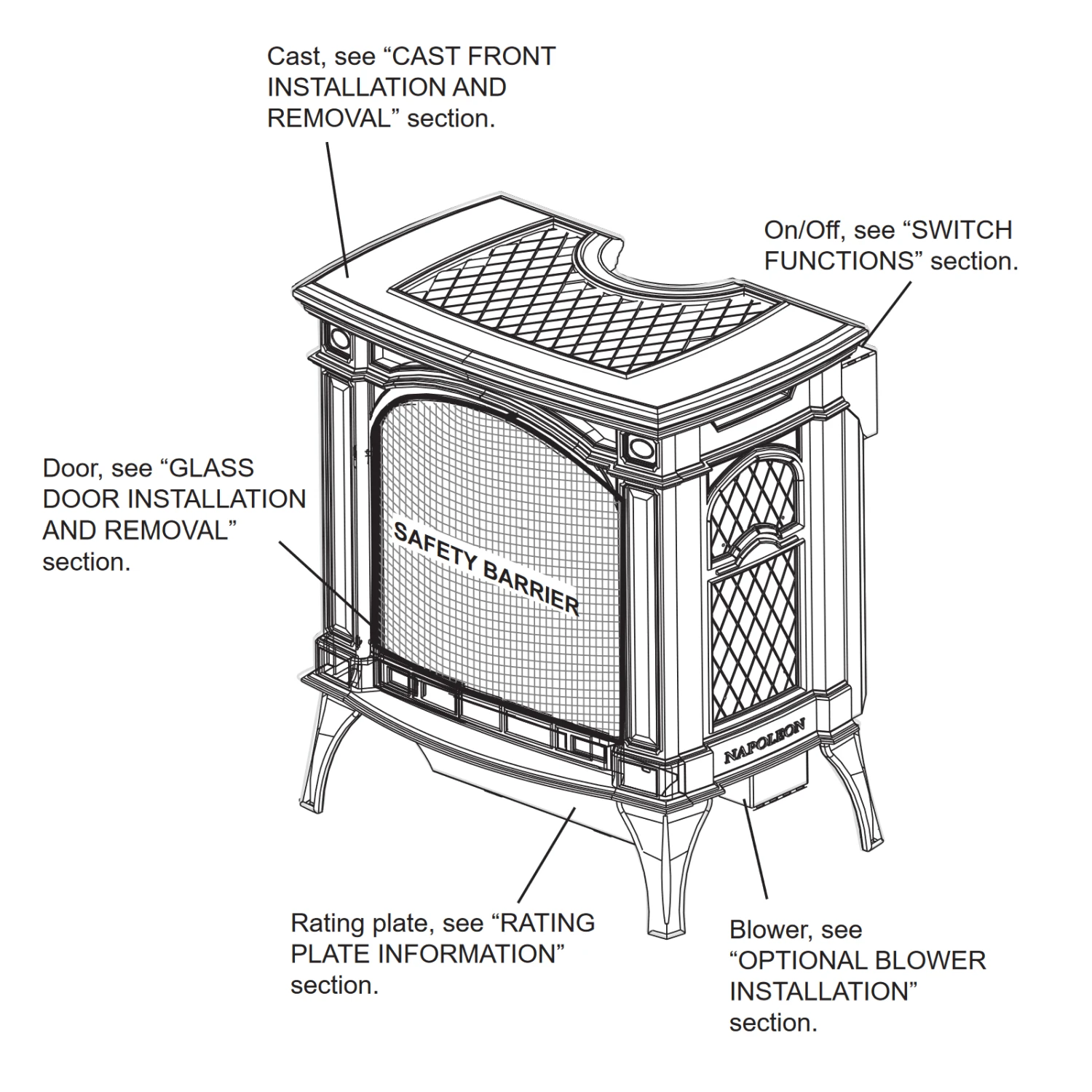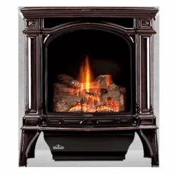 The Napoleon Bayfield Gas Stove crafted in cast iron comes in three designer colors that will look great in any home or cottage. The built-in secondary heat exchanger provides excellent heating efficiency and heat retention. Other features include a cost saving electronic ignition with battery back-up, 50% flame/heat adjustment, ceramic glass, standard on/off switch and an exclusive NIGHT LIGHT which creates a warm glow even when the stove is not operating.
