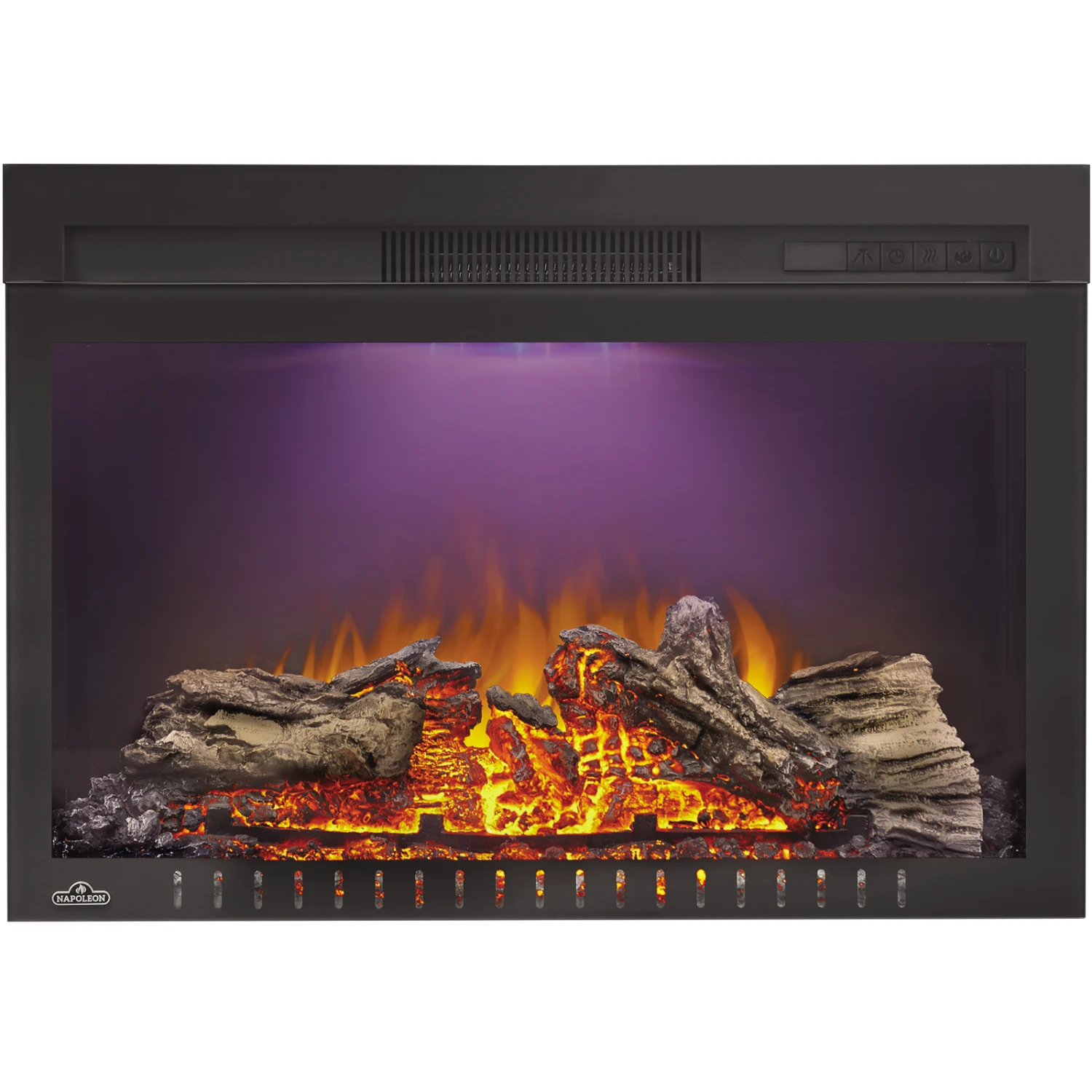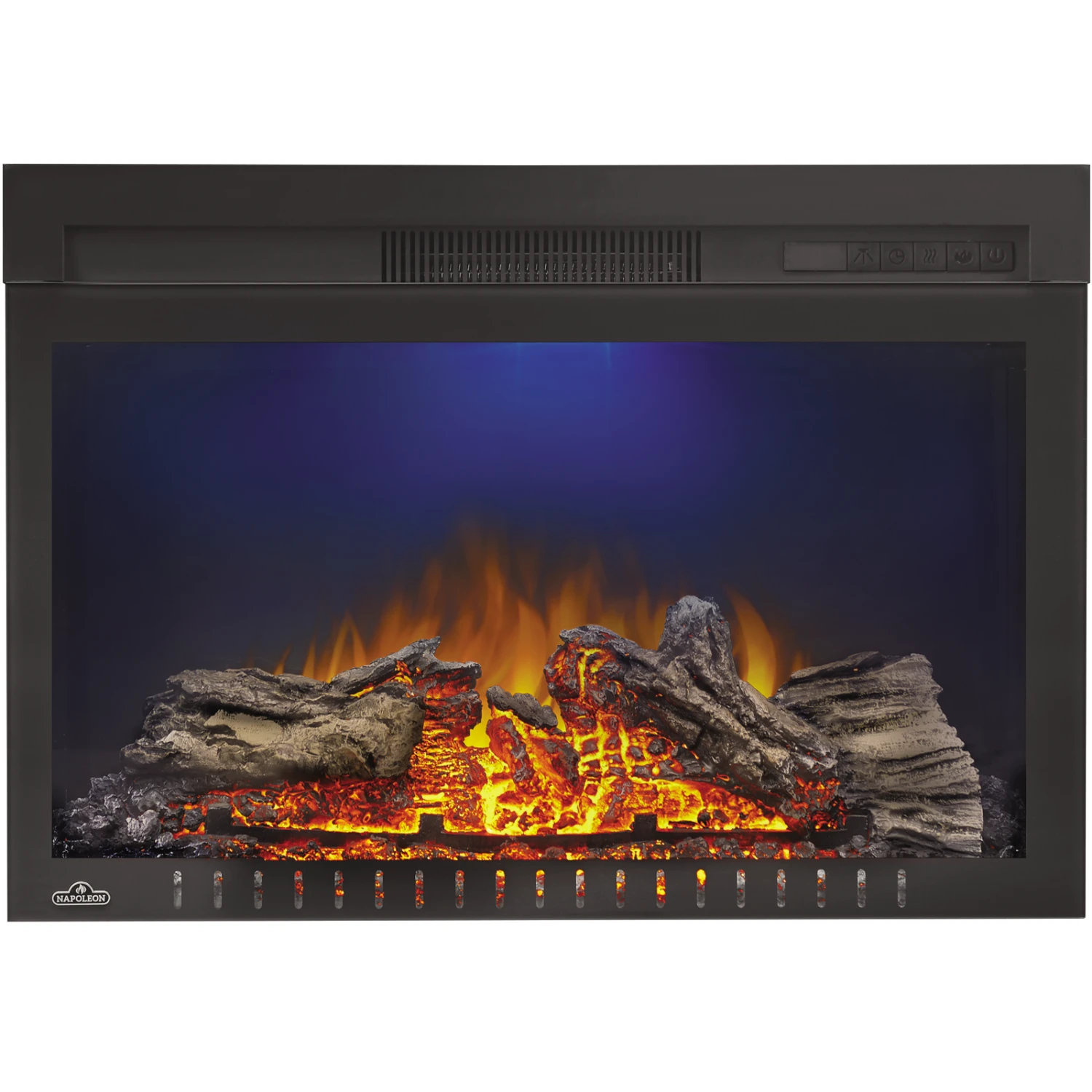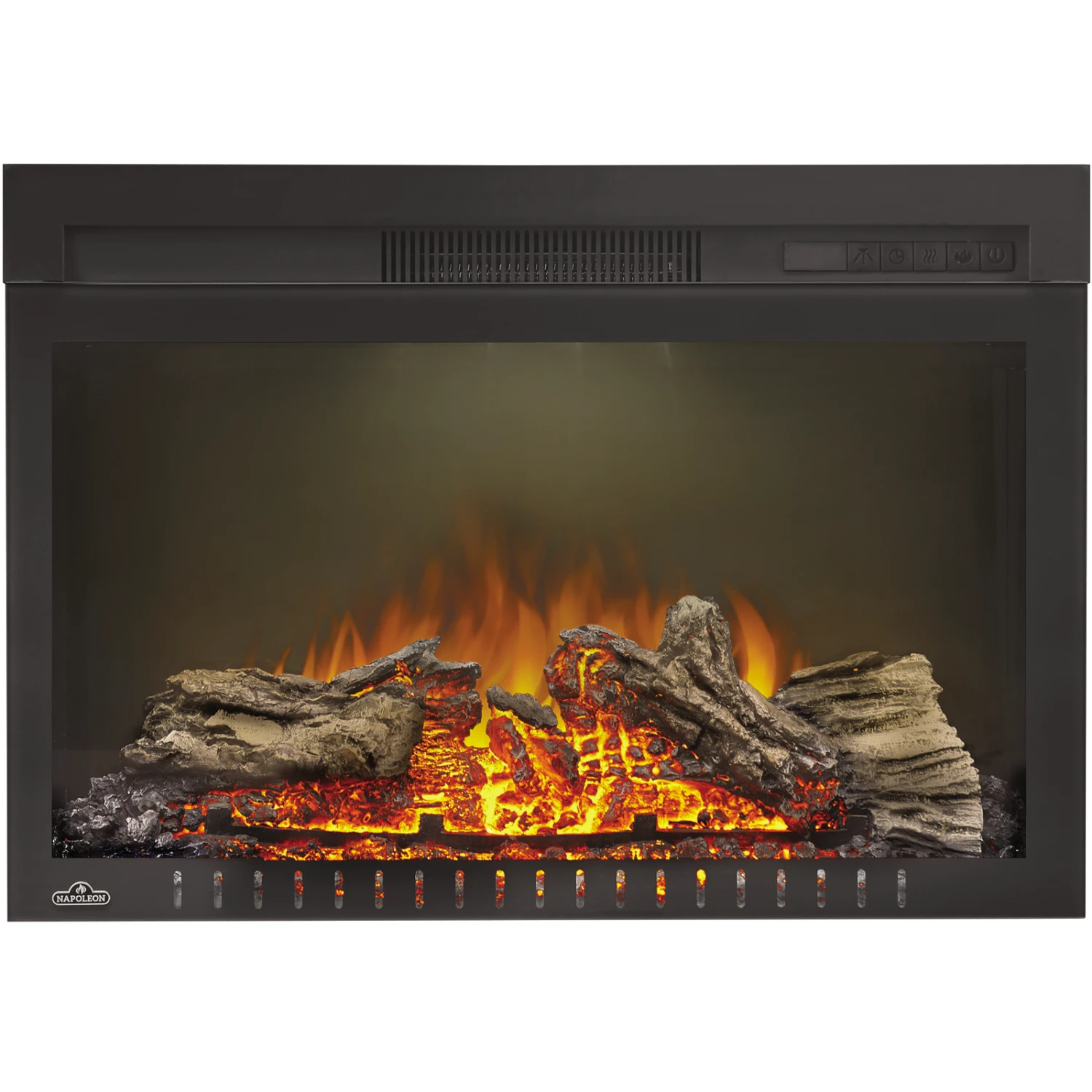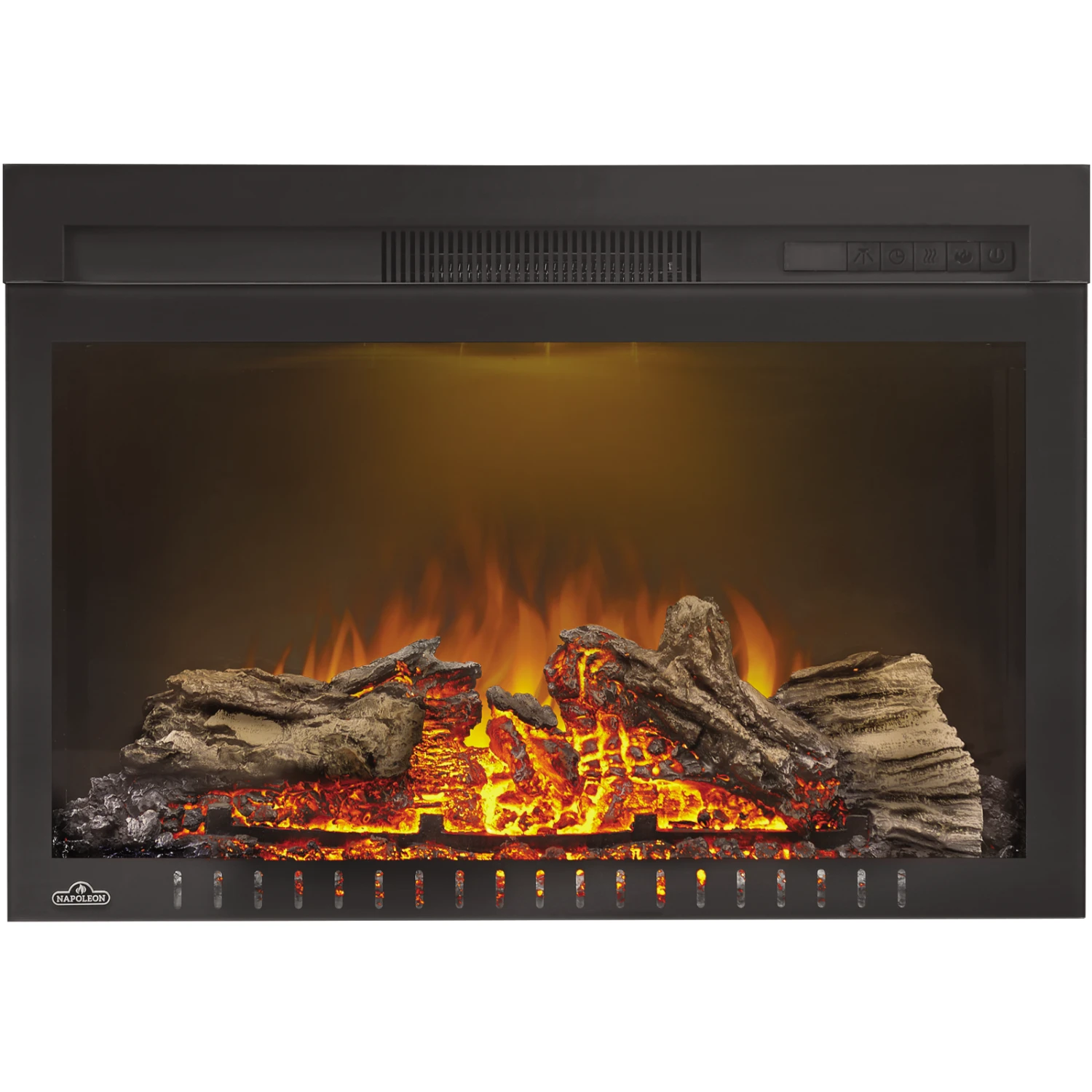 Make your living space inviting with the warm glow from the Napoleon Cinema 27 Electric Fireplace. This fireplace doesn’t need venting and will still fill your room with 5,000 BTU’s of warmth. For a modern feel, inset your Electric Fireplace into the wall. The realistic log bed glows just like real burning logs, and when you turn the fireplace off, fade just like a dying fire. Adjustable flame brightness and heat intensity let you control the mood. Perfect your space with a Cinema 27 Built In Electric Fireplace. Perfect for a built-in installation or can also be ordered with the Essential mantel package option for a functional and beautiful piece of decor.