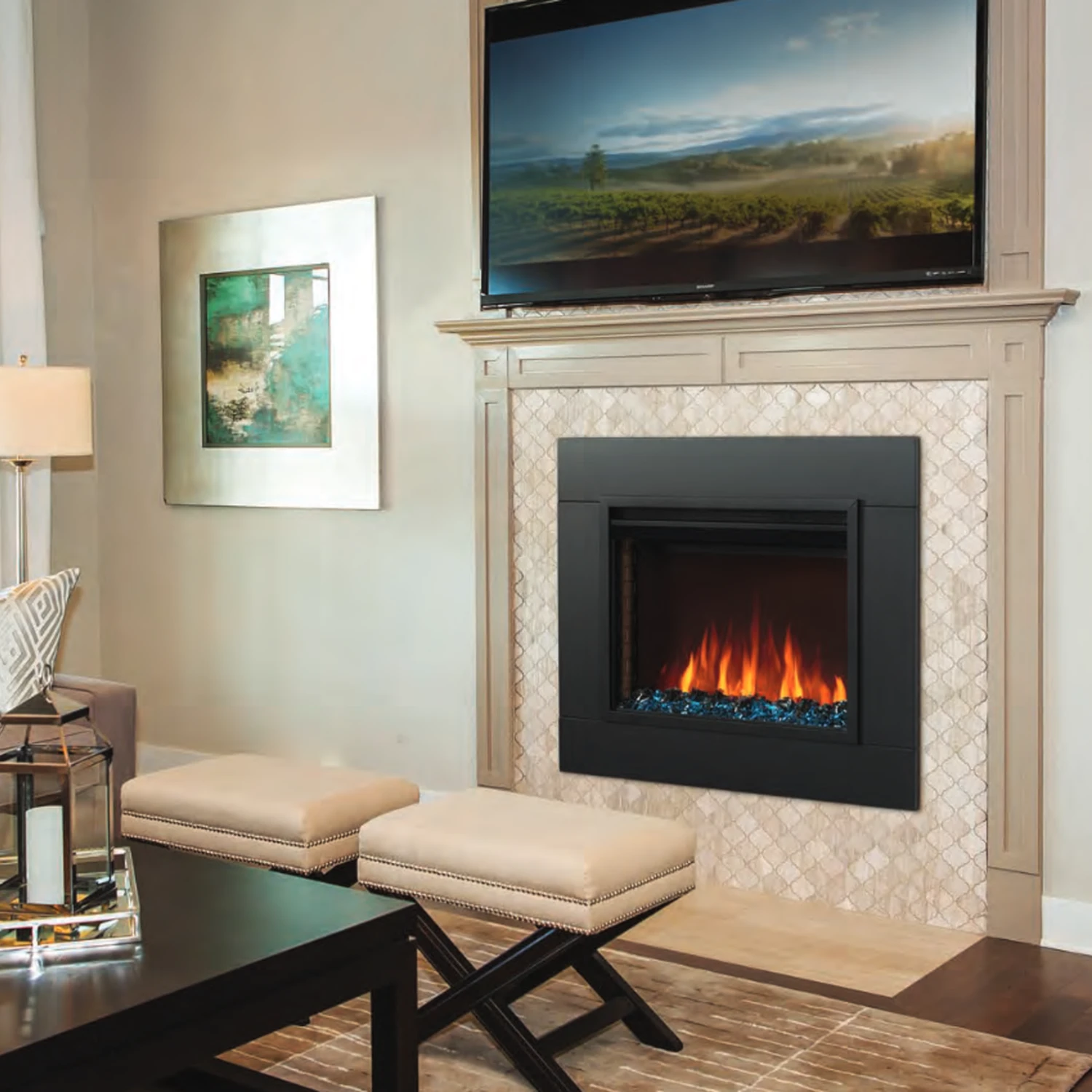 Napoleon’s new Cineview 26 electric insert comes with both logs and crystal media in one box, creating simplicity and flexibility for the homeowner to change up their look based on the season.