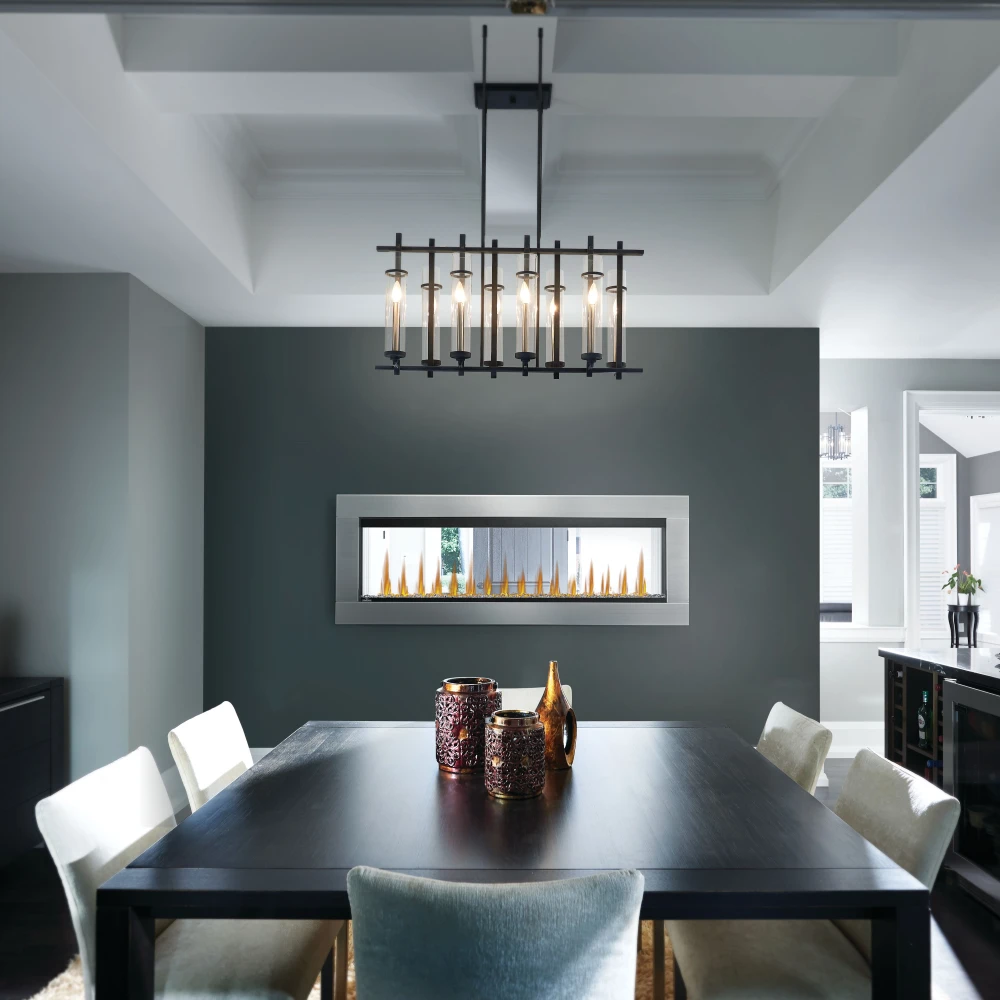 The CLEARion Elite 60 See Thru Electric Fireplace is the first ever truly see through electric fireplace. A CLEARion Elite 60 Electric Fireplace can be hardwired directly into your electrical system creating a seamlessly relaxing environment in two rooms. This unique fireplace can heat separate rooms at different rates, increasing the comfort of two spaces at the same time conveniently controlled with two remotes. A patent pending privacy mode allows you to change the transparency when privacy is desired. Customize this fireplace with either a sparkling crystal media ember bed or the hand-painted logs with Topaz glass embers; both sets are included. Illuminated from below by LED, color-changing lights, both ember bed styles glow with a luxurious feel that can be seen from both rooms.