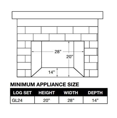 Each log set has a minimum firebox requirement. You can find the minimum opening for this log set in the images and specifications section above or in the installation manual.