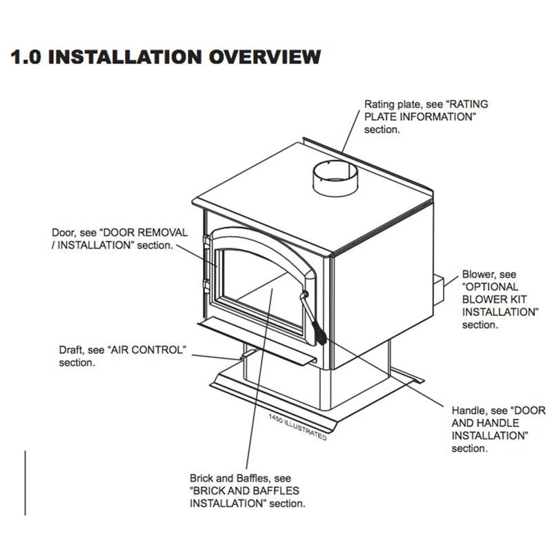 Napoleon’s deluxe pedestal EPA Huntsville 1400 wood burning stove features a solid, dynamic appearance and is designed to provide you with outstanding heat efficiencies while achieving low emissions. The Napoleon Huntsville 1400 Wood Stove comes standard with a painted metallic black trivet, painted metallic black louvers and an ash pan with a lid. Optional cast iron arched doors and trivets are available in a variety of finishes to match any room in your home.