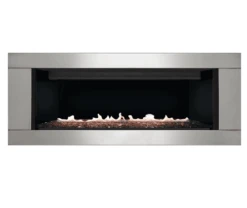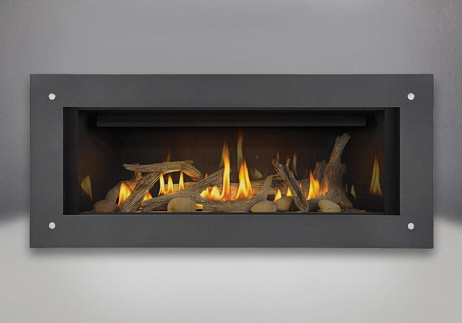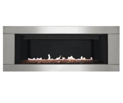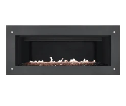 The Napoleon Linear 45 Gas Fireplace with a modern, linear look is specifically designed to provide you with a sophisticated fire element that is perfect for both new building and renovation projects. The Linear 45 Gas Fireplace comes standard with Napoleon exclusive Topaz CRYSTALINE ember bed that sparkles with a luxurious glow. To create a dramatic mix, optional river rocks and colored glass are available to replace or enhance the Topaz CRYSTALINE ember bed.