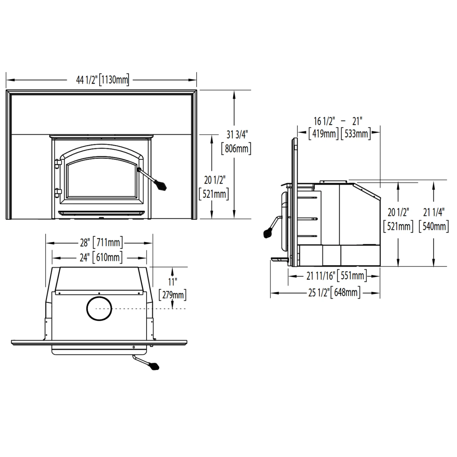 The Oakdale 1101 wood burning insert won a prestigious industry award for its unique design, which allows for flush mount or hearth mount installation in either a masonry or factory built fireplace. Featuring an elegantly designed, full view single door, standard WHISPER QUIET heat circulating blower & thermostatic sensor, this innovative design transforms small amounts of wood into large amounts of cozy heat. Customize your Oakdale 1101 insert with an optional cast iron surround kit that will enhance your décor.