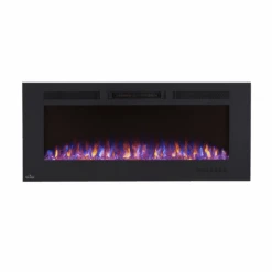Instantly update any room in your home with the Napoleon Allure Phantom 50 Electric Fireplace. No gas fitter necessary, just hang it like a work of art, plug it in, and enjoy. It will warm spaces of 400 sq. ft. with 5,000 BTU’s. Relish a view unhampered by reflections or glare thanks to the matte surround and mesh front. Master the flame color and height with the included remote. Orange or blue, and even a lovely combination of both to set the mood perfectly. This 5″ deep unit won’t intrude into your space, but transforms it, adding the luxury of a fireplace anywhere. The Allure Phantom 50 Electric Fireplace can also be fully recessed for an even more low profile look.