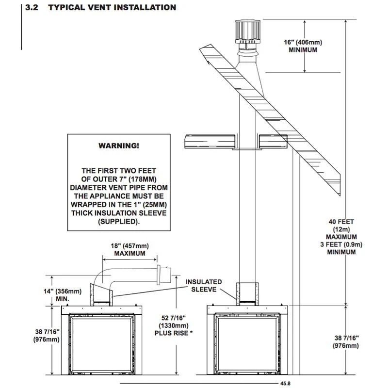 The HDX35 is typically vented using Napoleon’s 4×7 venting components, you can find them here. If you need help designing the venting system let us know with an email or a phone call and we can assemble a custom solution for your situation.