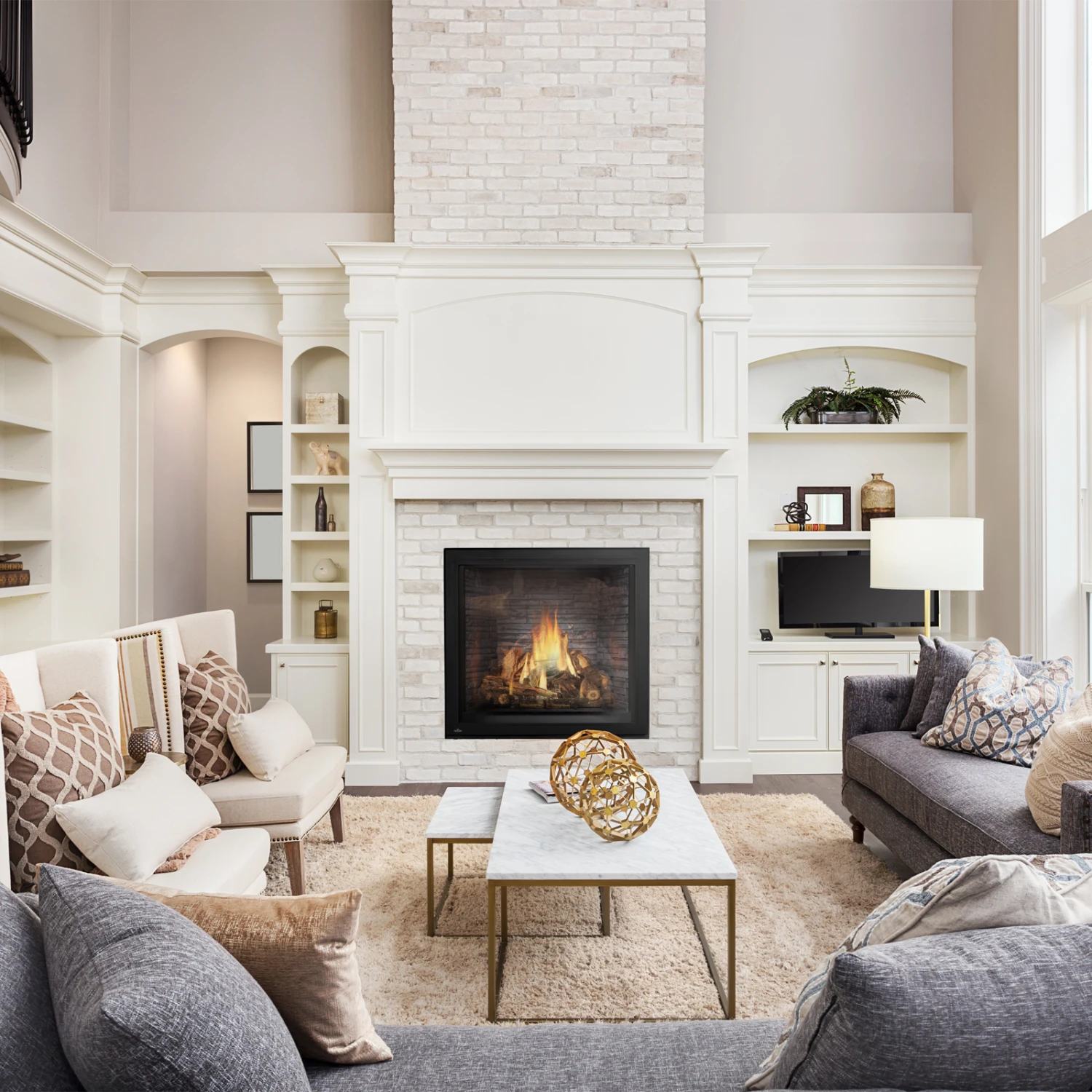 Created with Napoleon’s state-of-the-art gas fireplace technology, the STARfire 52 gas fireplace offers a wide range of heat output and advanced burner technology that produces a massive concentrated flame that reaches high in the firebox creating a glowing ambiance throughout the interior. Easy Slide door glides into place with kitchen drawer style door glides a Patent Pending design. The realistic hand painted PHAZER log set is rich in detail and creates a towering show of flames while the PHAZER OAK log set disburses flames across the width of the firebox for a traditional hand built fire appearance. Napoleon’s STARfire 52 offers you endless choices and is a one of a kind fireplace that you will be proud to show to family and friends! The perfect fit for great rooms and large family rooms or for anyone looking to make a statement in their home.