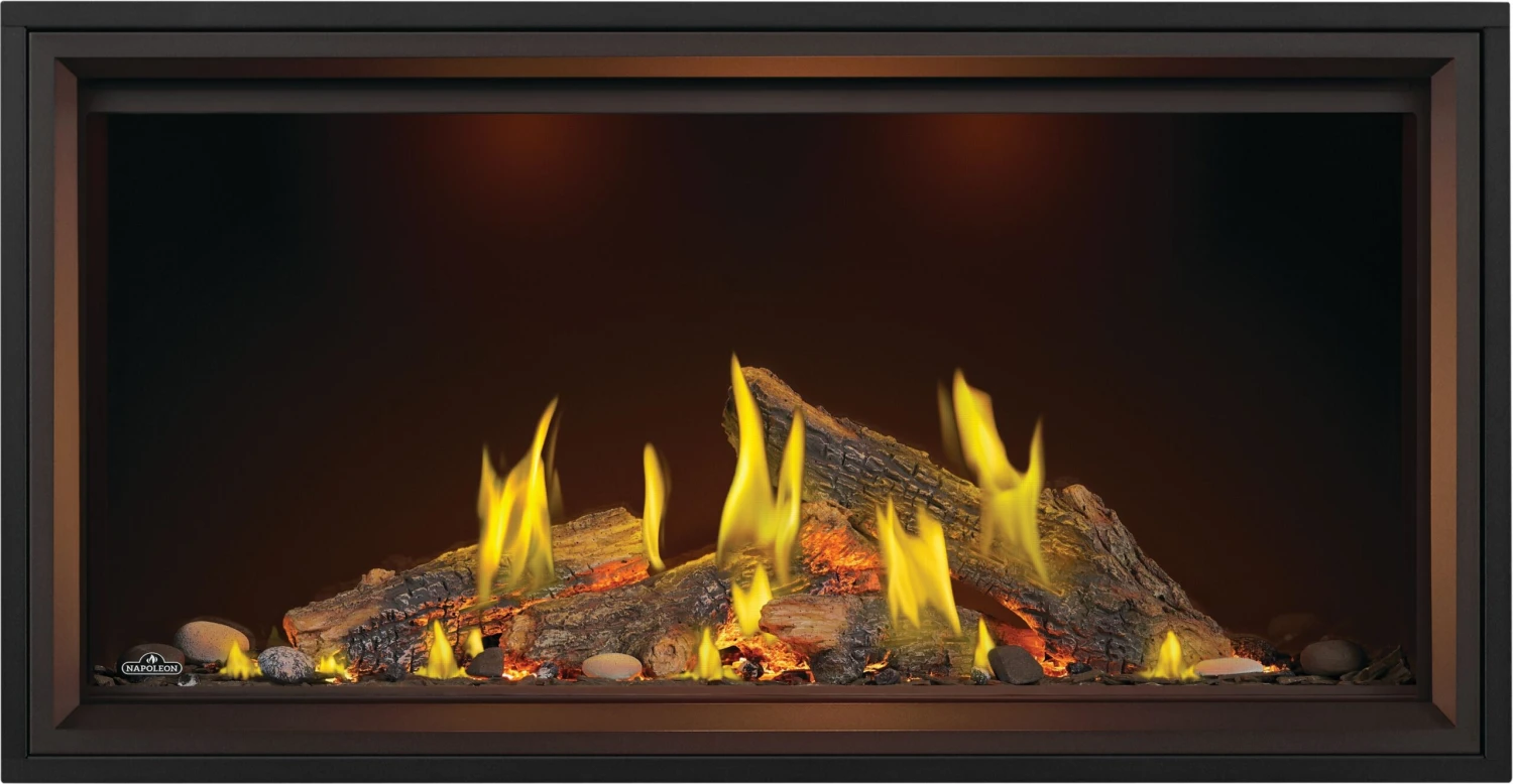 Enhance your home’s ambiance with the Napoleon Tall Vector Linear gas fireplace. It combines modern design with advanced technology for efficient heating and a realistic fire effect. Featuring a sleek look, modulating ember bed, superior heat distribution, and optional heat management systems (DHC & DHM), it’s the ultimate in style and innovation. Opt for Luminous Logs for a lifelike wood-burning experience, ensuring comfort and beauty. Redefine your space with this luxurious fireplace upgrade.