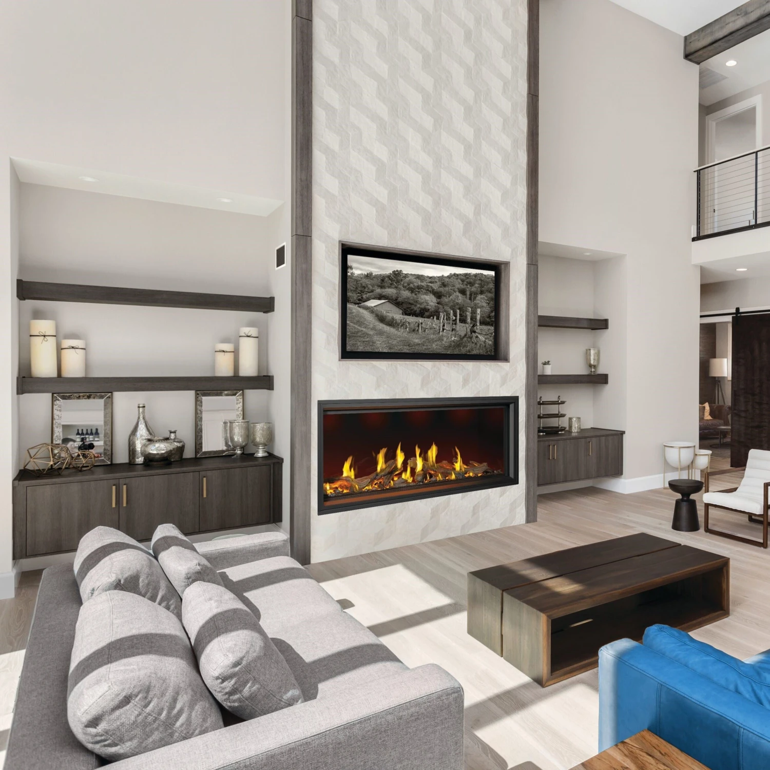 Enhance your home’s ambiance with the Napoleon Tall Vector Linear gas fireplace. It combines modern design with advanced technology for efficient heating and a realistic fire effect. Featuring a sleek look, modulating ember bed, superior heat distribution, and optional heat management systems (DHC & DHM), it’s the ultimate in style and innovation. Opt for Luminous Logs for a lifelike wood-burning experience, ensuring comfort and beauty. Redefine your space with this luxurious fireplace upgrade.