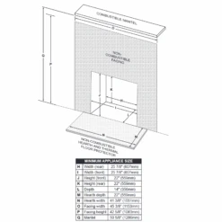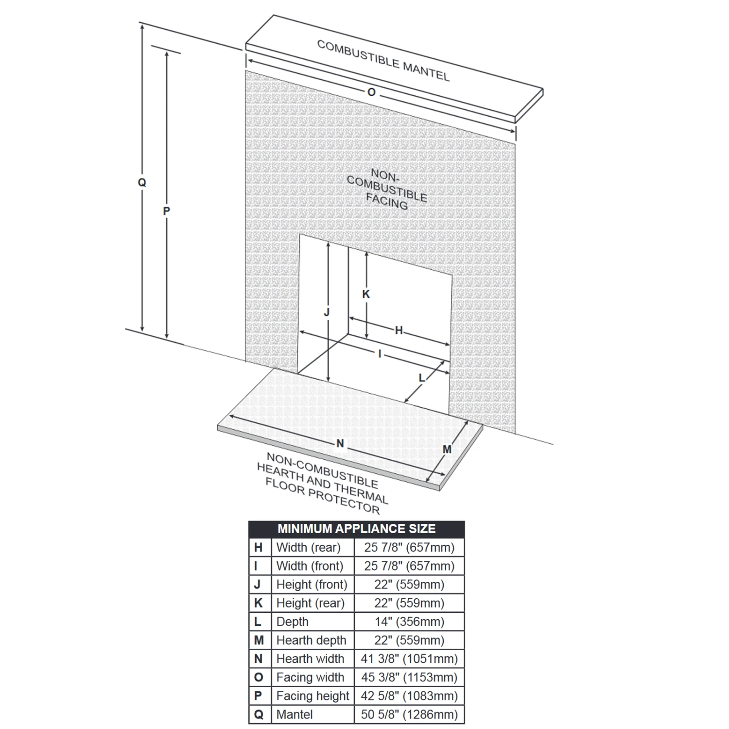 - Minimum fireplace opening: 25 7/8˝w x 22˝h x 14˝d
