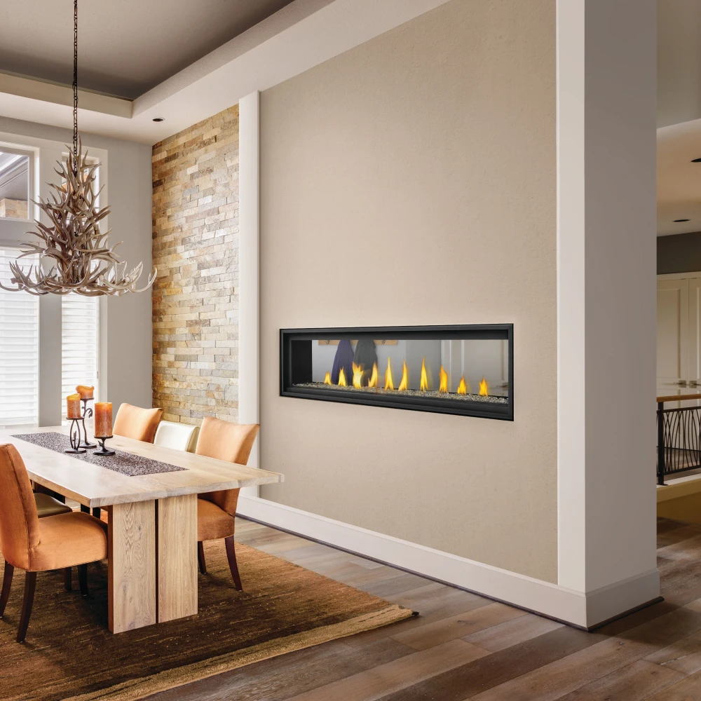 Napoleon’s Vector 74 see-through gas fireplace is the perfect fit for any room or anyone looking to make a statement in their home. Customize your fireplace with our selection of designer surrounds, choose a different surround for either side of the See-Thru Vector 74 to match or enhance your current decor. Napoleon’s Vector 74 can also match any interior design; with dozens of media options available, the possibilities are endless.