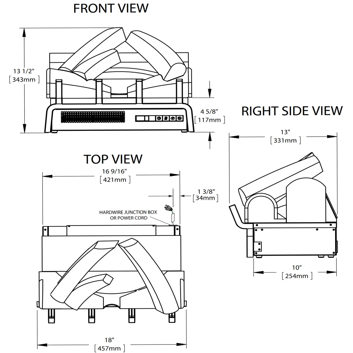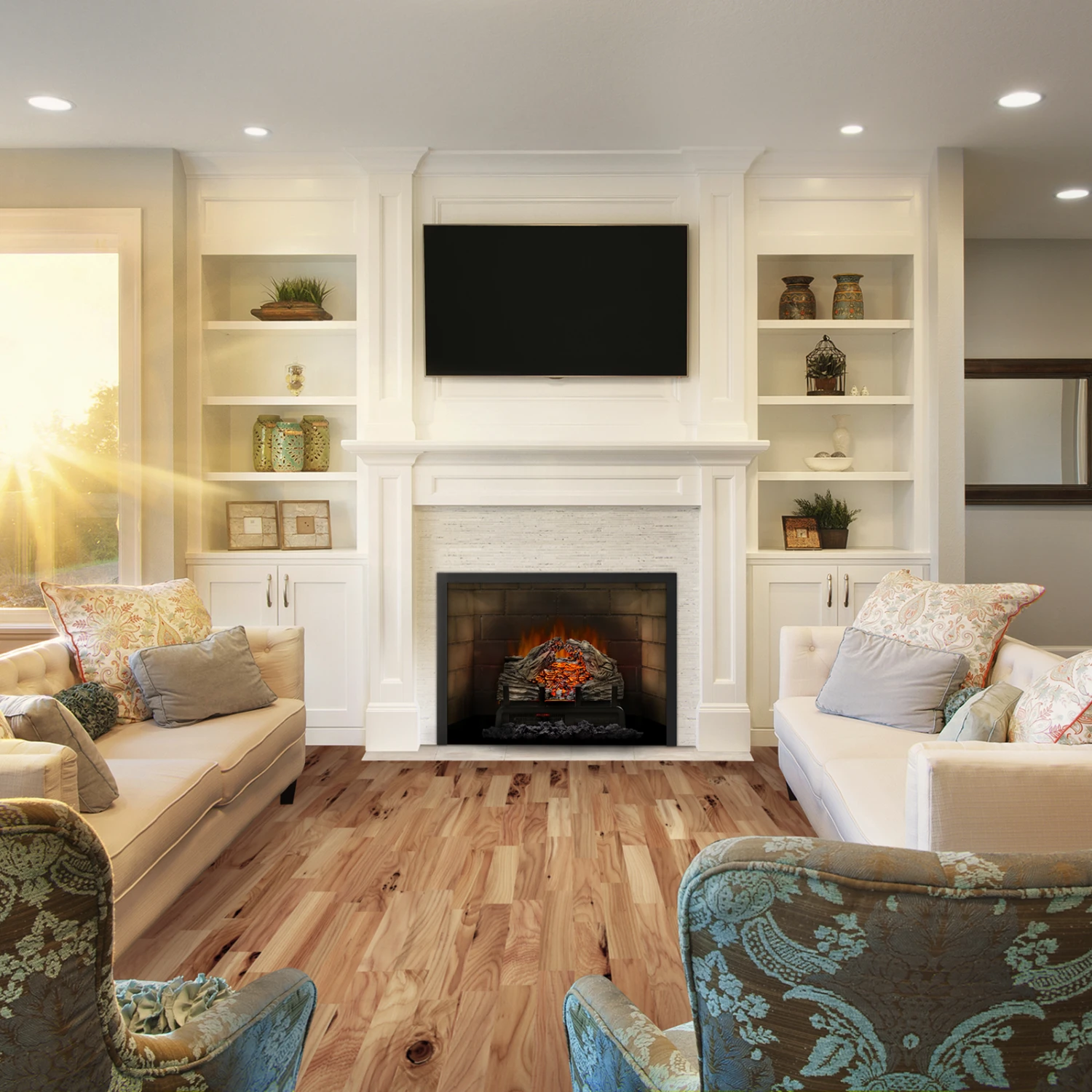 - High intensity LED lights provide an alluring flame show as well as realistic burning logs