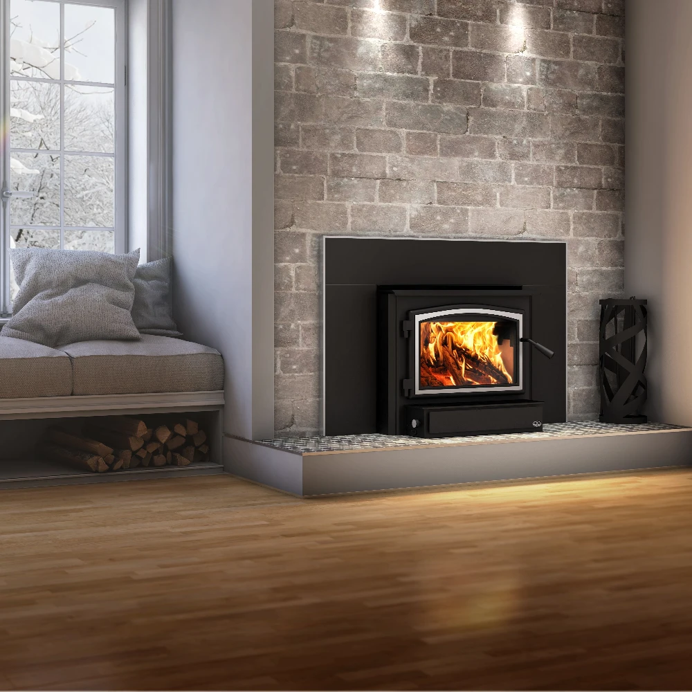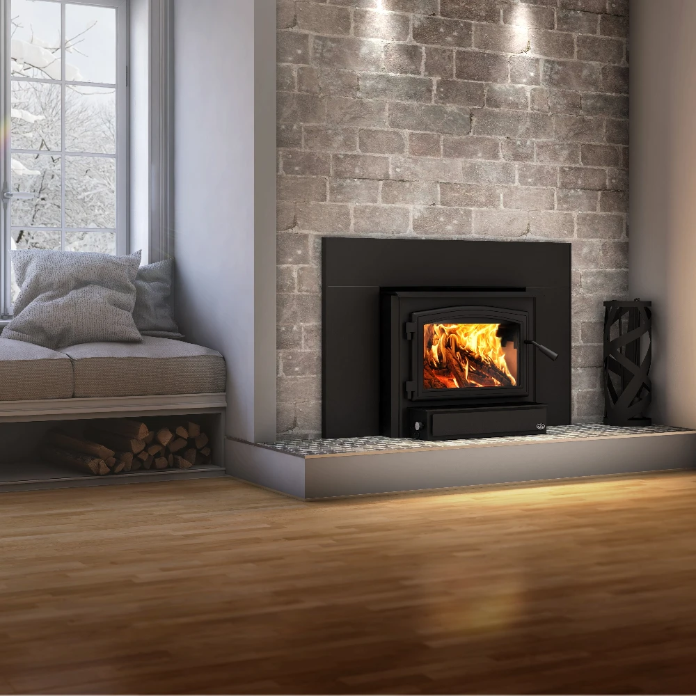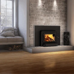 Elevating standards, the Osburn 2000 wood burning insert achieves a new threshold for fine particulate emissions with its recent certification. Its enhanced version now boasts a particulate emissions rate of 2.3 g/h, offering 75,000 BTU/h maximum heat output and an impressive 79% optimal efficiency. Choose from steel door overlays in black or brushed nickel, along with faceplate trims. Look no further—indulge in Osburn’s renowned quality.