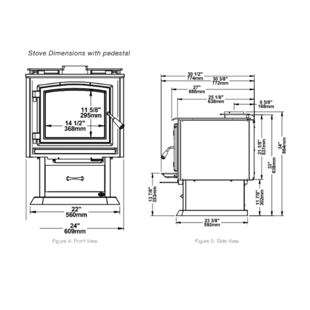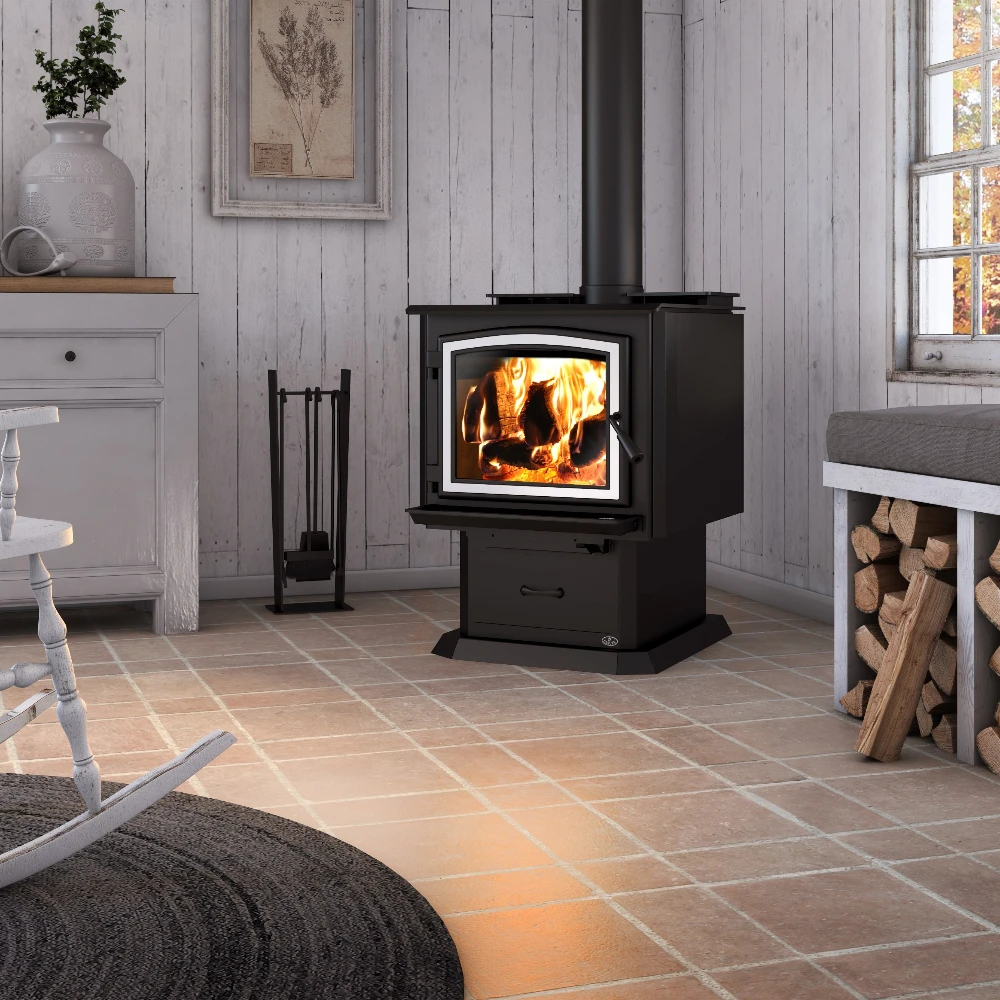 Experience the epitome of eco-friendly efficiency with the Osburn 3300 wood stove. Emitting just 0.95 g/h, it’s one of the market’s cleanest energy sources. This north-south loading model generates 90,000 BTU/h, ensuring warmth even in frigid conditions. With impeccable design, high-density bricks, stainless steel heat shield, and more, it’s a powerful unit. Customize with leg styles, door overlays, and more. Embrace interior comfort through reinvention.