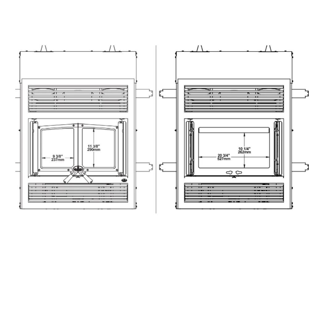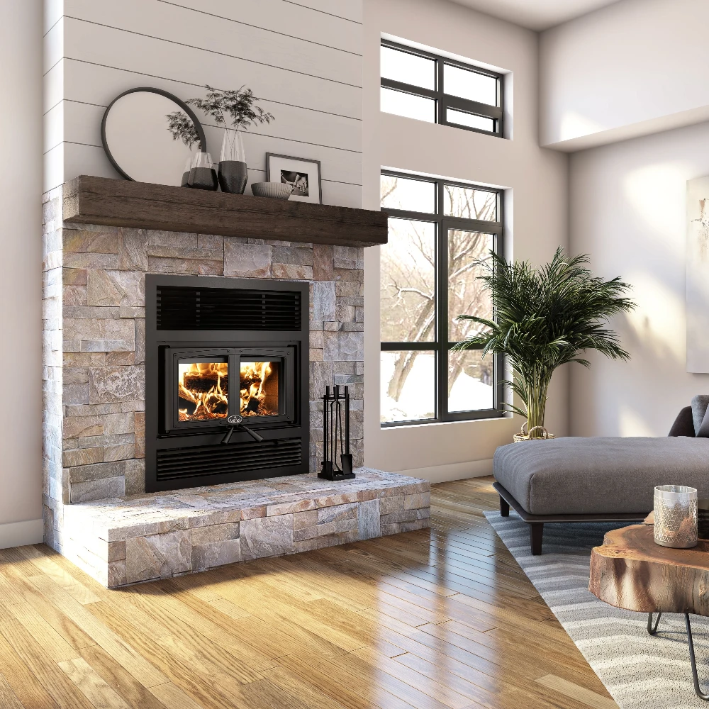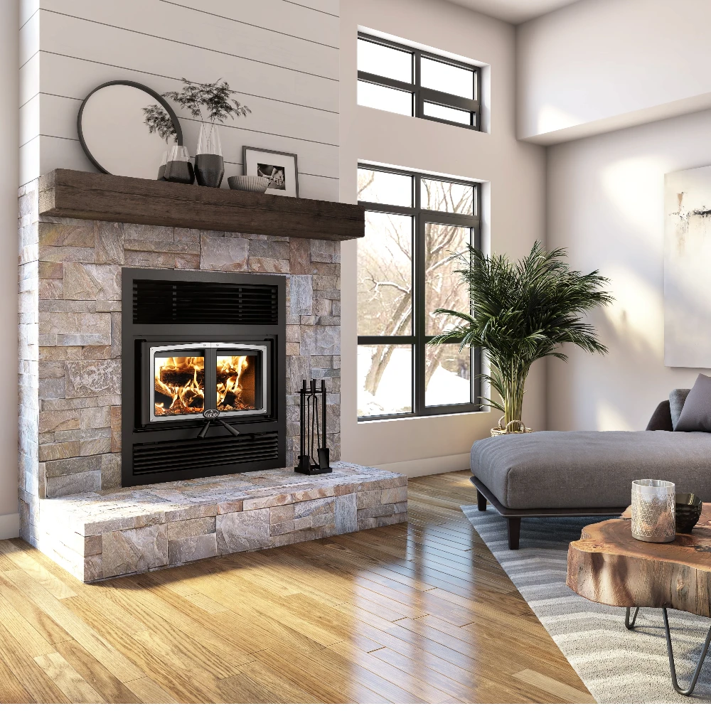 The brand-new Everest II: Enhancing Living Spaces with Attractiveness, Efficiency, and Eco-Friendliness. Elevate your living area with timeless faceplate aesthetics, seamlessly integrating with any decor. Discover both aesthetic charm and warmth during chilly winters with this user-friendly, non-catalytic wood fireplace. Crafted in Quebec with precision, its retractable cast iron double doors can be further augmented with a firescreen door, allowing you to immerse yourself in the enchanting sounds of crackling wood fires.