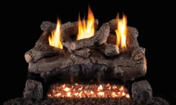 Discover the Evening Fyre log sets, showcased on the sophisticated G18 Vent-Free Burner System. These logs, meticulously sculpted and hand-painted, feature pronounced charring on the front log for an authentic wood fire appearance. The striking ember bed, enriched with Bryte Coals and complemented by two decorative wood chunk covers, amplifies the log set’s warmth and aesthetic appeal, redefining the essence of a cozy hearth.