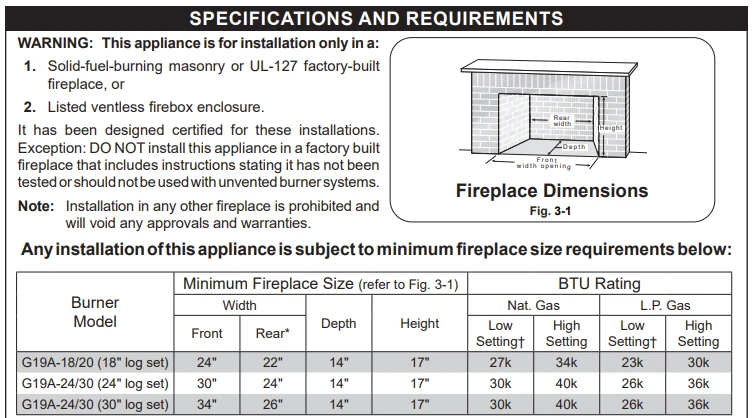Introducing the innovative G19A Burner System, the latest in vent-free gas log technology. With its clean-burning feature, this system delivers stunning flame patterns and comes in two unique log styles. The front log’s lifelike design and glowing embers offer unmatched realism and beauty, setting a new standard for your fireplace’s aesthetic.
