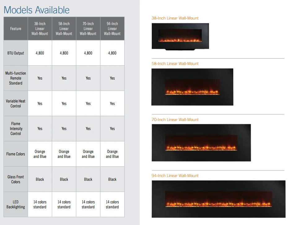 Please see recommended alternative Simplifire Allusion 40 Inch Wall Mounted Electric Fireplace