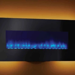 Create a distinct contemporary look. The SimpliFire 58″ electric fireplace provides an instant upgrade to any space, with or without the heat. Simply hang the fireplace on the wall and plug it in. With multi-colored LED backlighting to accent any decor and four flame settings, it’s easy to become mesmerized by the dazzling flames!