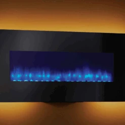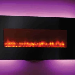 Create a distinct contemporary look. The SimpliFire 70″ electric fireplace provides an instant upgrade to any space, with or without the heat. Simply hang the fireplace on the wall and plug it in. With multi-colored LED backlighting to accent any decor and four flame settings, it’s easy to become mesmerized by the dazzling flames!