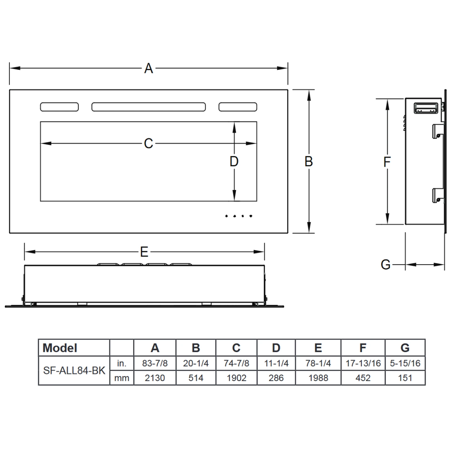 The Allusion electric fireplace series embraces modern design by combining linear proportions with a multitude of flame and ember bed LED lighting themes. Additionally, intuitive operation is exemplified by the standard remote and touch controls on the fireplace front.