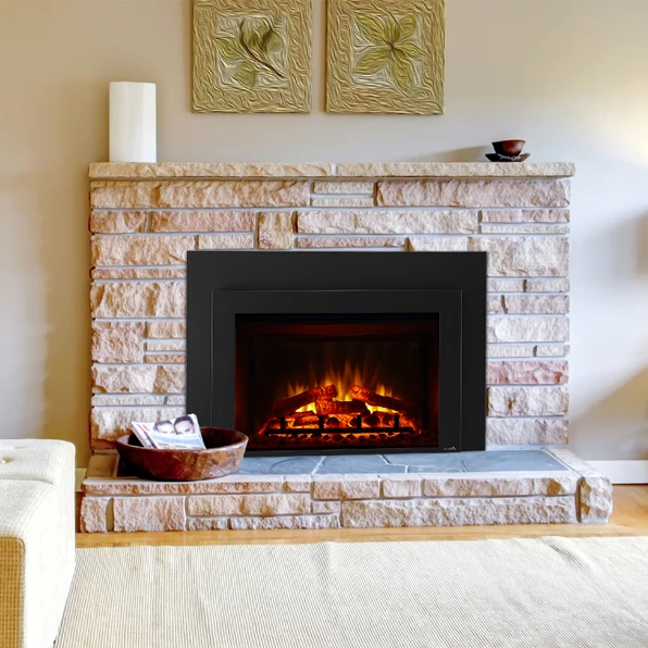 There has never been a more economical way to transform your drafty, dated fireplace into an efficient and attractive source of warmth. Keep instant comfort at your fingertips with the intuitive multi-function remote. Firebox accent lighting, textured log set and multiple flame intensity levels enhance the allure. Best of all, enjoy the ambiance with or without the heat for year-round use. This is “Fire Made Simple.”