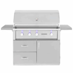 Crafted in the USA, the Alturi Series epitomizes luxury in outdoor grilling. With its elegant design, powerful performance, and comprehensive features, it redefines luxury grilling. Key conveniences include angle-mounted interior lights, rotisserie storage, and a spring-assisted hood. Constructed from durable #304 stainless steel and equipped with high BTU burners, the Alturi Series ensures enduring quality. It leads in performance, quality, and style, standing unrivaled in the luxury grill market.