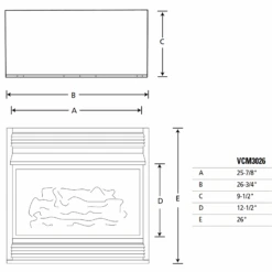 The VCM3026 Vent-Free Gas Fireplace is sleek, yet powerful. This compact fireplace is slightly deeper than most in this class; includes a full size log set and dual burner design to give you the warm and cozy feeling of a real wood burning fire without having to compromise. Compact fireplace design. Arched screen with louvered front. Up to 26,000 BTU with 99% heat efficiency. Available in millivolt (remote ready) or thermostat ignition systems. 20 year limited warranty.