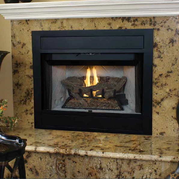 The BRT4542 B-Vent Fireplace features multi-dimensional refractory log arrangement and deep glowing ember bed. An aluminized “U” tube dual burner provides real wood-fire ambiance with 40,000 BTU. The BRT4542 ships smooth faced and include hidden screen pockets, easy access flue damper with safety shut-off switch, and white refractory. Includes white brick hearth.