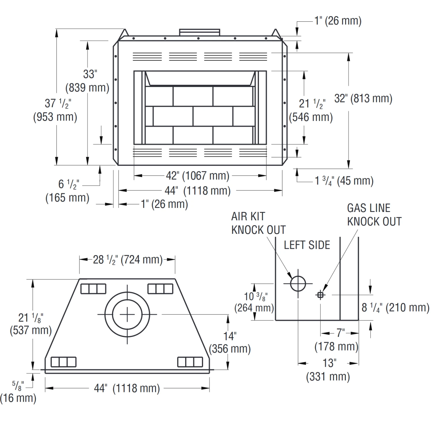 Though surprisingly economical, The WRT/WCT2042 fireplaces present a “big box” look with an oversized brick to brick opening. Available in clean-face and circulating models, the fireplace comes standard with textured, powder coat finish and full smooth gray refractory brick liner. 8″ pipe makes for easy installation.