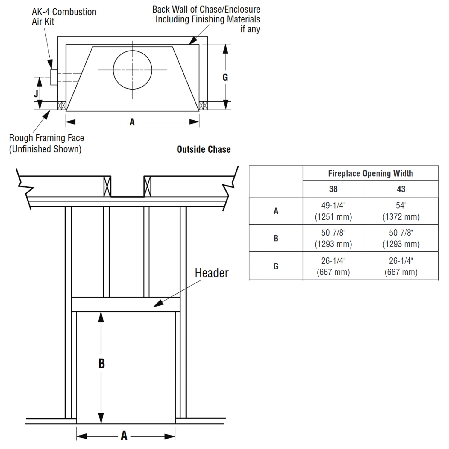 - Optional outside air kits with flex duct and hood are available