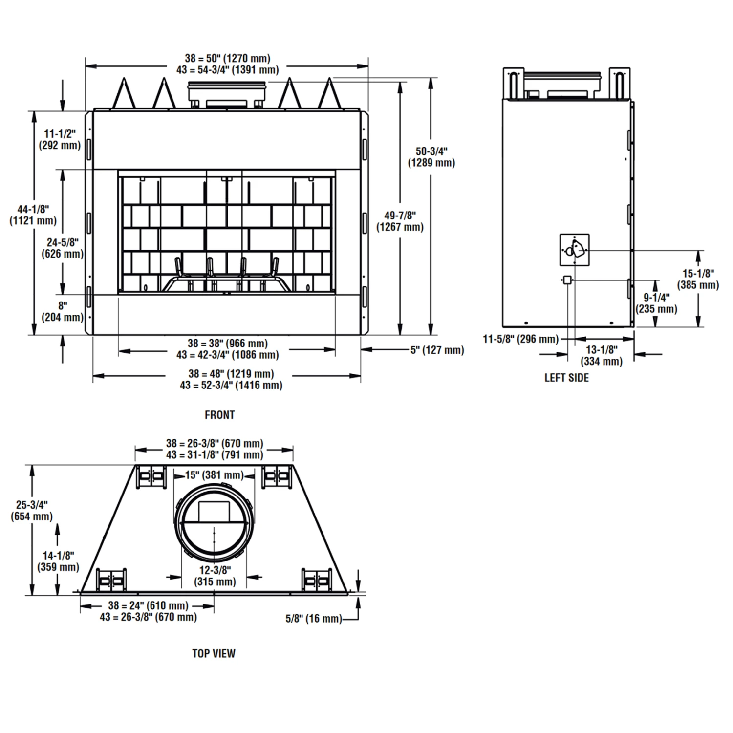 - Fully insulated firebox for increased performance in colder climates