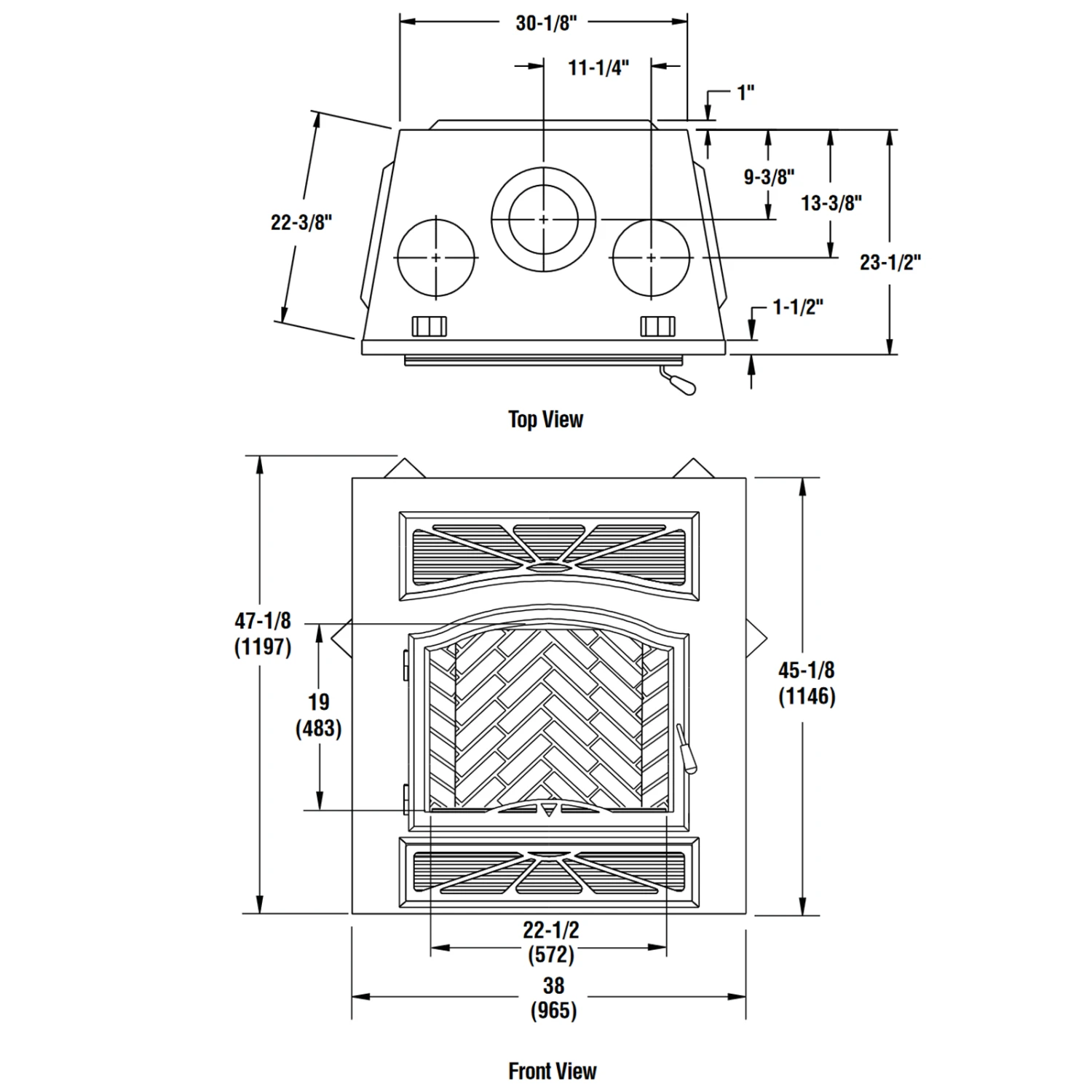 - 3.8 cubic foot insulated firebox that accepts up to 20″ log size for increased performance